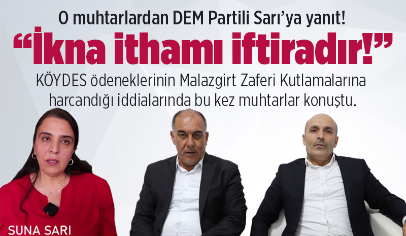 DEM Parti İl Genel Meclis Üyesi Sarı'nın söylemlerinin gerçeği yansıtmadığını, Malazgirt Zaferi için yapılan toplantıda karar alındığını ancak kararın alınmasına ilişkin hiçbir şekilde herhangi bir kimseden bir baskı görmedikleri aktaran Budunoğlu ve Baynal, Suna Sarı'nın ‘Muhtarlar Bir Şekilde İkna Edildi' ifadelerini iftira ve itibar suikastı olarak nitelendirip şunları söylediler;