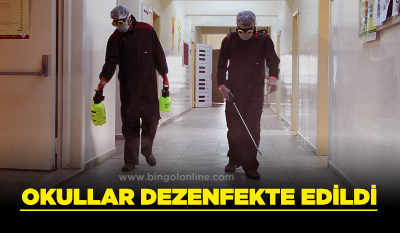 Çin'de başlayıp dünyaya yayılan korona virüsünün Türkiye'ye sıçramasının ardından ülke genelinde hem kurumlar hem vatandaşlar tedbirlerini almaya devam ediyor. Bingöl'de de İl Milli Eğitim Müdürlüğü koordinesinde kent genelindeki tüm eğitim kurumlarında okul idarecilerinin gözetiminde korona virüse karşı önleyici tedbir almak amacıyla temizlik, ilaçlama ve dezenfekte çalışması yapıldı. Görevli personeller okullarda sınıflar, lavabo, idari alanlar ve okuldaki tüm iç ve dış cepheleri dezenfekte etti.