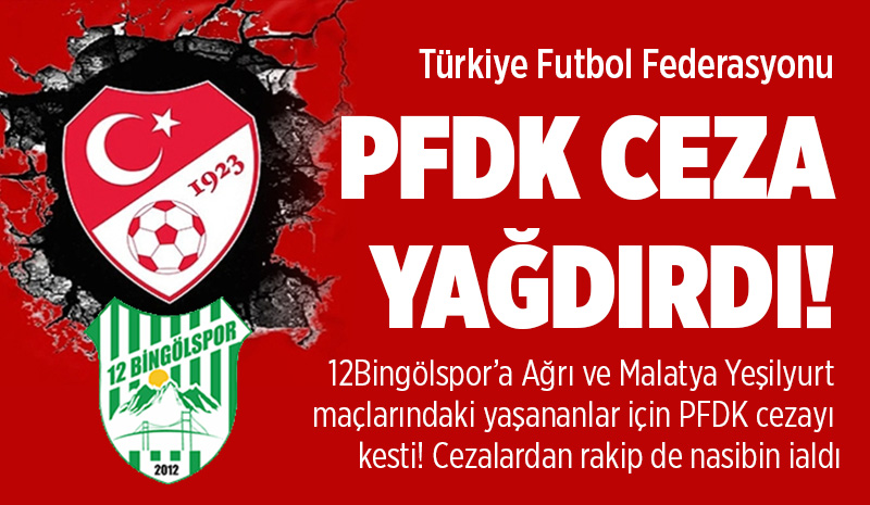 Türkiye Futbol Federasyonu (TFF) Profesyonel Futbol Disiplin Kurulu (PFDK), 18 Eylül ve 25 Eylül 2025 tarihli toplantı kararlarını açıkladı. Ağrı 1970 Spor ve Malatya Yeşilyurtspor maçlarındaki olay ve davranışların cezaya dönüştüğü kararlarda, 12Bingölspor'a hem takım halinde hem de kulüp başkanına ayrı ayı cezalar kesildi.