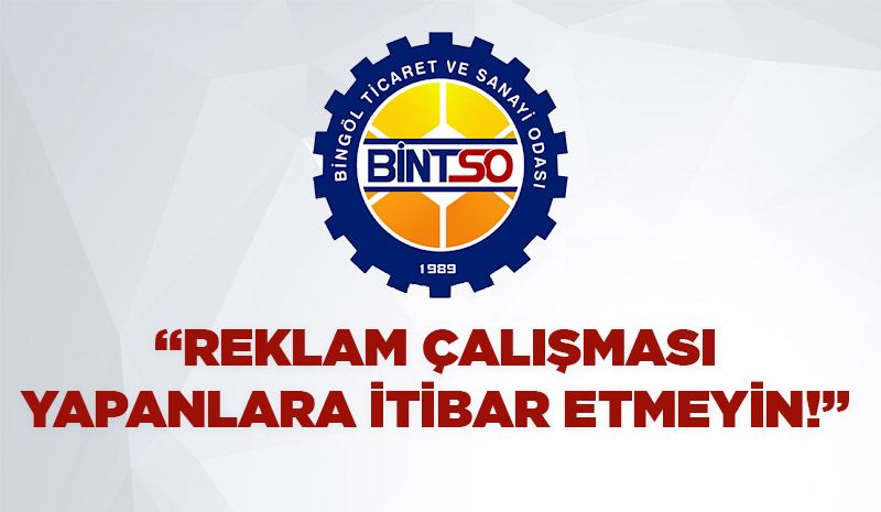 BİNTSO, kentteki tüm üyelerini, esnaflarını ve iş insanlarını reklam çalışması yapanlara karşı uyardı. Gelen bilgi üzerine bir açıklama yapan Bingöl Ticaret ve Sanayi Odası Genel Sekreteri Yunus Emre Katrancı, kişi veya kişilere itibar edilmemesi gerektiğini bildirdi.