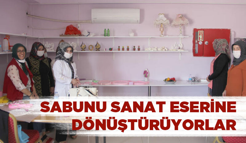 Hazır sabunu çeşitli aşamalardan geçirerek el becerileriyle şekillendiren bayanların hazırlamış oldukları süs sabunlar görenler tarafından büyük beğeni kazanıyor.