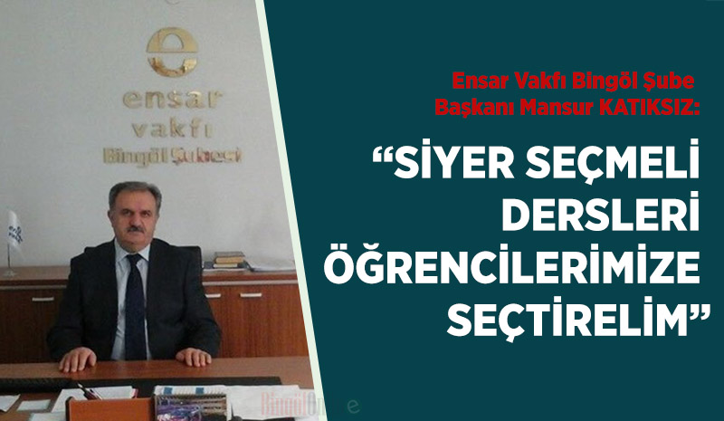 Seçmeli derslerin seçim sürecinin başlamasıyla birlikte Bingöl'de velilere ve eğitimcilere çağrıda bulunan Ensar Vakfı Bingöl Şube Başkanı Mansur Katıksız, “Ortaokullarda ve liselerde her yıl olduğu gibi bu yılda seçmeli ders olarak verilecek olan Kur'an-ı Kerim, Temel Dini Bilgiler ve Siyer derslerini 21 Ocak 2022 tarihine kadar çocuklarımıza seçtirelim” dedi.