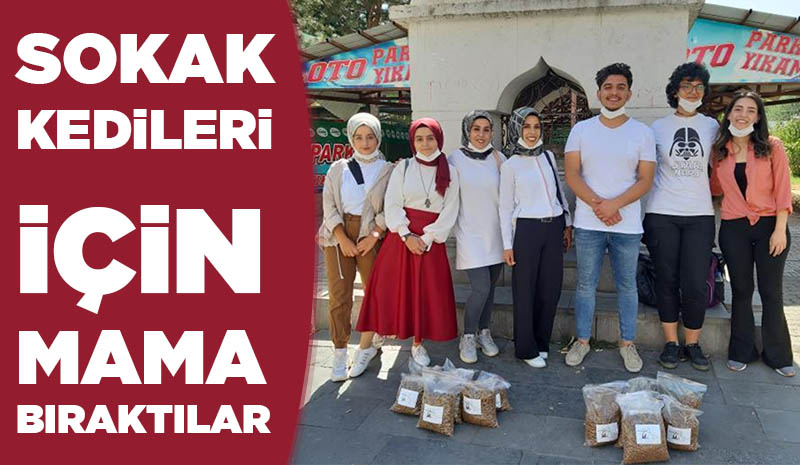 Bingöl Saat Kulesi önünde toplanan gençler, dergi satarak kazandıkları para ile sokak kedileri için aldıkları mamaları, hayvanların yaşam alanlarına bıraktı.