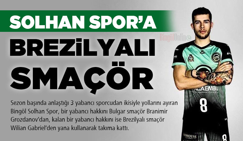 Türkiye Voleybol Federasyonu AXA Sigorta Efeler Ligi takımlarından Bingöl Solhanspor Kulübü, başarılı smaçör Wilian Gabriel ile anlaştı. Sezon başından bu yana istenilen başarıyı yakalayamayan Bingöl temsilcisi, takımı daha iyi hale getirmek için beklenen performansı göstermeyen sporcular ile yollarını ayırırken yeni sporcuları takıma katmaya devam ediyor. Sezon başında anlaştığı 3 yabancı sporcudan ikisiyle yollarını ayıran Bingöl Solhan Spor, bir yabancı hakkını Bulgar smaçör Branimir Grozdanov'dan yana kullanırken kalan bir yabancı hakkını ise Brezilyalı smaçör Wilian Gabriel'den yana kullanarak takıma kattı. Sporcunun yakın zamanda takıma katılması bekleniyor.