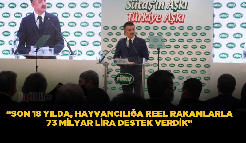 Programda konuşan Tarım ve Orman Bakanı Dr. Bekir Pakdemirli, "Üç kuşaktır, hayvancılık sektörüne hizmet eden SÜTAŞ'ın Bursa, İzmir ve Aksaray'dan sonra Bingöl'de gerçekleştireceği Hayvancılık Entegre Tesisi, Etki Analizi Lansmanında, sizlerle bir arada olmaktan büyük memnuniyet duyuyorum. Bingöl başta olmak üzere, bu bölgeye önemli katkılar sağlayacak, hayvancılık sektörümüze değer katacak bu projenin ülkemize hayırlar getirmesini diliyorum.1,1 Milyar Lira gibi büyük bütçeli bu yatırımın, istihdam başta olmak üzere, tarımsal sanayinin gelişmesine, göçün önlenmesine ve bölgenin kalkınmasına büyük bir ivme kazandıracağına yürekten inanıyorum. Bildiğiniz gibi hayvancılık, bizim en eski uğraşlarımızdan birisi. Orta Asya'dan başlayan, Anadolu'da zenginleşip büyüyen köklü bir meslek. Bizler de Tarım ve Orman Bakanlığı olarak, yetiştiricimizin emeğini, özel sektörün yatırım gücüyle birleştirerek bu sektörü daha çok üretime ve daha çok katma değere dönüştürmeye gayret ediyoruz. Son 18 yılda, hayvancılığa reel rakamlarla 73 Milyar Lira destek verdik. Son 2,5 yılda ise Cumhurbaşkanlığı hükümet sistemiyle birlikte hayvancılıkta, yerli, yeterli ve kaliteli üretim anlayışıyla çalışmalarımıza hız kattık. Son 3 yılda hayvancılığa verdiğimiz desteği 2 kattan fazla artırarak 7,8 Milyar Liraya çıkardık. Hâlihazırda kaliteli süt temini için, çiğ süt üretimine önemli miktarda destek sağlıyoruz. Son 3 yılda, çiğ süt prim desteğini 2,3 kat artışla 695 milyon liradan 1,6 milyar liraya çıkardık. Yine, 25 Ocak 2020'de, Çiğ İnek Sütünün Sınıflandırılmasına İlişkin Tebliğ yayımlandı. Bu kapsamda, sanayi için önemli olan sınıflandırılmış çiğ süte ilave pirim veriyoruz. Geçen yıl pilot olarak 3 ilimizde başlattığımız bu çalışmayı, önümüzdeki yıl 81 ilimize yaygınlaştırmayı planlıyoruz. Ayrıca, geçen yıl sonbahar döneminde çiğ süt fiyatını yüzde 22 artışla litre başına 2,8 liraya yükselttik. Süt üretiminin yanında, kırsal kalkınma hibeleriyle ülkemizdeki modern hayvancılık tesislerinin artmasını da teşvik ediyoruz. Bu kapsamda son 2,5 yılda, toplam 160 milyon lira hibe ödedik" dedi.