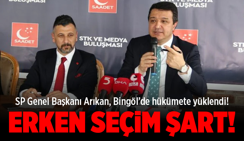 Saadet Partisi Genel Başkanı Mahmut Arıkan, Bingöl'de yaptığı açıklamada ekonomik şartlar ve toplumsal kutuplaşmanın yönetilemez noktaya geldiğini savunarak erken seçim çağrısında bulundu.