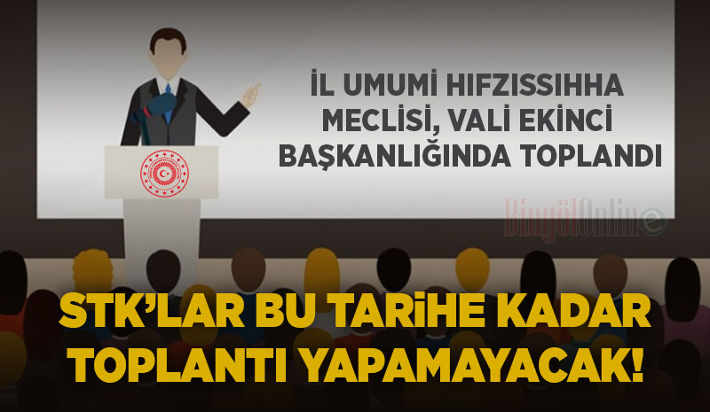 Bingöl İl Umumi Hıfzıssıhha Meclisi, Vali Kadir Ekinci başkanlığında toplandı. Toplantıda, sivil toplum kuruluşları, kamu kurumu niteliğindeki meslek kuruluşları ve üst kuruluşları, birlikler ve kooperatifler tarafından düzenlenecek etkinliklerin (genel kurul toplantıları dahil) 01.03.2021 tarihine kadar ertelenmesi kararı alındı.