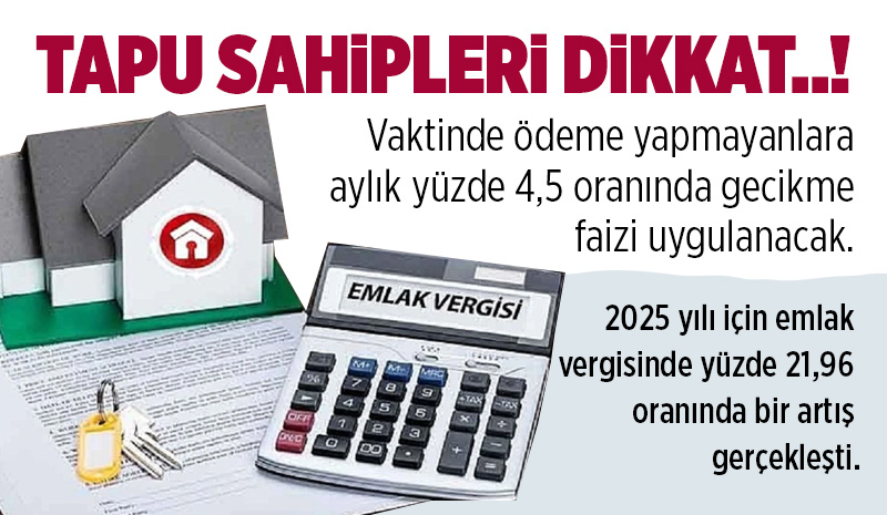 Tapu sahiplerine uyarı! Gecikme faiziyle karşı karşıya kalabilirsiniz2025 yılı emlak vergisi ödemeleri 3 Mart'ta başlıyor. Vergi oranlarında yüzde 21,96'lık artış yapılırken, büyükşehirlerde ve diğer illerde farklı oranlar uygulanacak. Ödeme tarihleri, muafiyetler ve diğer önemli detaylar, gayrimenkul sahiplerinin yakından takip etmesi gereken konular arasında yer alıyor.![]() Gayrimenkul sahipleri için her yıl düzenli olarak ödenmesi gereken emlak vergisi, 2025 yılında da belirlenen takvim doğrultusunda tahsil edilecek. Vergi mükelleflerinin gecikme faiziyle karşılaşmamak için ödeme tarihlerini takip etmesi önem taşıyor. ÖDEME TAKVİMİ2025 yılı emlak vergisi ödemeleri 3 Mart itibarıyla başlayacak. Verginin ilk taksitinin en geç 2 Haziran'a kadar yatırılması gerekiyor. İkinci taksit ise Kasım ayında ödenecek. Dileyen mükellefler her iki taksiti tek seferde ödeme imkanına da sahip olacak. VERGİ ORANLARINDA ARTIŞBu yıl emlak vergisi, yeniden değerleme oranının yarısı kadar artırıldı. Bu kapsamda, 2025 yılı için emlak vergisinde yüzde 21,96 oranında bir artış gerçekleşti. Emlak vergisi oranları, taşınmazın bulunduğu yerleşim yerine göre değişiklik göstermektedir. BÜYÜKŞEHİR BELEDİYELERİNE BAĞLI İLLERDE:Konutlar için binde 2 İş yerleri için binde 4 Arsalar için binde 6 Araziler için binde 2 BÜYÜKŞEHİR OLMAYAN İLLERDE:Konutlar için binde 1 İş yerleri için binde 2 Arsalar için binde 3 Araziler için binde 1 şeklinde uygulanacaktır. GECİKME FAİZİ VE ÖDEME SEÇENEKLERİEmlak vergisinin zamanında ödenmemesi durumunda, aylık yüzde 4,5 oranında gecikme faizi uygulanacaktır. Vergi ödemeleri belediyelerden, e-Devlet sistemi üzerinden veya ilgili bankalar aracılığıyla gerçekleştirilebilir. EMLAK VERGİSİNDEN MUAFİYETBelirli şartları taşıyan mükellefler emlak vergisinden muaf tutulmaktadır. Geliri olmayan emekliler, engelliler, gazi ve şehit yakınları gibi gruplar, belirli koşullar altında bu vergiyi ödemekten muaf olabilirler. Muafiyet durumlarıyla ilgili kesin bilgi almak için ilgili belediyelerle iletişime geçmek gerekmektedir. Zamanında ve doğru ödeme yaparak ek faiz yüküyle karşılaşmamak adına emlak vergisi takvimini takip etmek büyük önem taşıyor.