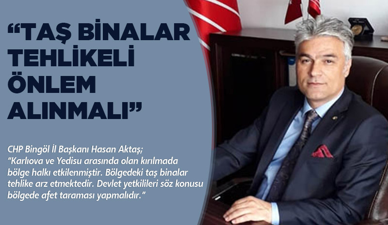 Cumhuriyet Halk Partisi (CHP) Bingöl İl Başkanı Hasan Aktaş, önceki gün merkez üssü Karlıova olan depremle alakalı bir açıklama yaptı.