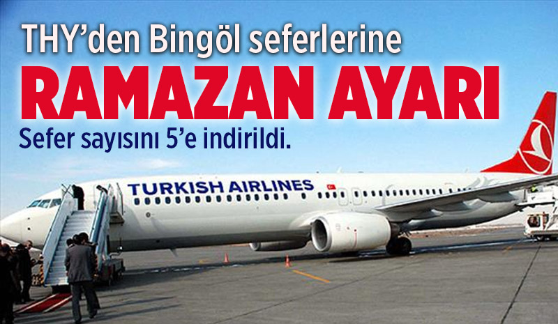 Türk Hava Yolları (THY), Ramazan ayı ve kış mevsimi dolayısı ile yurt genelinde bazı noktalarda sefer sayısını azalmaya gitti. Haftanın 7 günü Bingöl'e sefer yapan Türk Hava Yolları, Ramazan ayı nedeniyle sefer sayısını 5'e indirdi.