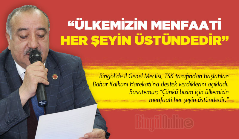 Bingöl İl Genel Meclisi, Türk Silahlı Kuvvetleri (TSK) tarafından başlatılan Bahar Kalkanı Harekatı'na destek verdiklerini açıkladı.