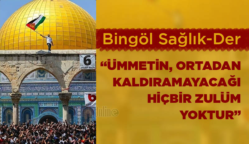 Sağlık-Der Bingöl Şubesi ile Dünya İslam Sağlık Birliği tarafından Mescid-i Aksa'daki İsrail terörü ile ilgili basın açıklaması düzenlendi.