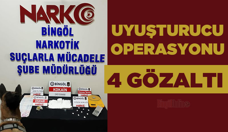 Edinilen bilgiye göre, İl Emniyet Müdürlüğü Narkotik Suçlarla Mücadele Şubesi ekipleri, uyuşturucu madde ticaretinin önlenmesine yönelik çalışma yaptı. Yapılan çalışmada 6 ayrı suçtan aranan Y.Ç.'nin kente batı illerinden kokain maddesi naklettiği ve U.A. ile birlikte kent merkezinde kiraladıkları 2 ayrı apart dairede sattıkları tespit edildi. Bunun üzerine polis tarafından eş zamanlı düzenlenen operasyonda, Y.Ç., U.A., D.T., ve Y.Ç. gözaltına alındı. İl Emniyet Müdürlüğünde ifadeleri alınan 4 şüpheli bugün adliyeye sevk edildi.
