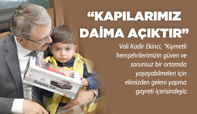 Vatandaşlar ise Vali Ekinci'nin kendilerini makamında kabul edip, sorunlarını dinleyerek çözüm ürettiğini belirterek, ilgi ve alakasından dolayı Vali Ekinci'ye teşekkür etti.