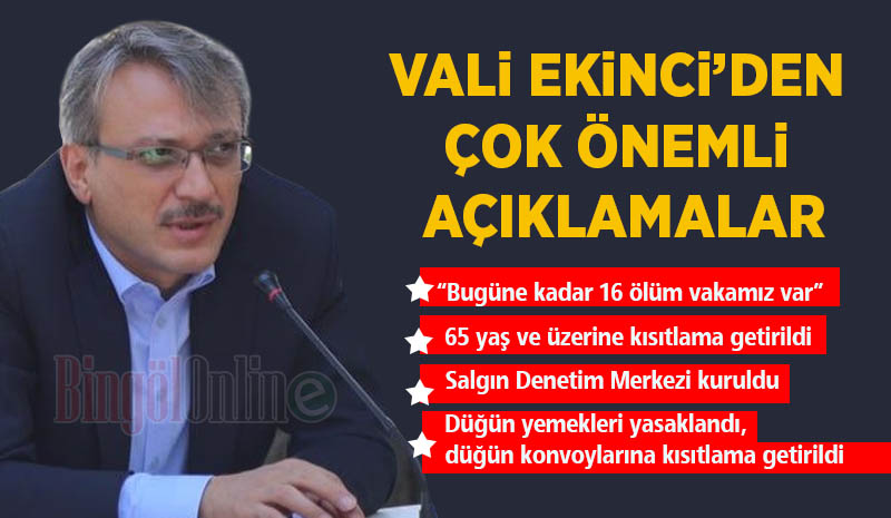 Vali Ekinci'den önemli açıklamalarBingöl Valisi Ekinci, Bingöl'de bugüne kadar Covid-19 bağlı olarak 16 ölüm vakamız var dedi. Vali Ekinci, alınan yeni tedbirleri ve tavsiye kararlarını ise şöyle sıraladı;![]() Bingöl'de basın mensuplarıyla bir araya gelen Vali Ekinci, “Bingöl'de bugüne kadar 16 ölüm vakamız var Covid-19 bağlı olarak. Sayı genellikle vermiyorum ama bu önemli bir sayı. Bingöl nüfusu ölçeğinde Covid-19'a bağlı ölüm oranı ciddi bir rakam” dedi. Bingöl Valisi Kadir Ekinci, kentteki basın mensuplarıyla bir araya gelerek gündeme dair açıklamalarda bulunurken, kent genelinde Covid-19 bağlı olarak alınan yeni tedbirleri açıkladı. “Bugüne kadar 16 ölüm vakamız var” Bingöl'de koronavirüs'e (Covid-19) bağlı olarak 16 ölümün gerçekleştiğini söyleyen Vali Ekinci, “Bingöl'de çıkan toplam vakaların içinde ne yazık ki 65 yaş ve üzeri vatandaşlarımızın oranı yüzde 23 ve bu bizi çok ciddi anlamda üzüyor. Çünkü bu yaş gruplarında başka hastalıkların olmasından dolayı koronavirüs bulaşması halinde diğer hastalıkları da tetikliyor ve ne yazık ki ölümcül sonuçlar doğurabiliyor. Bingöl'de bugüne kadar 16 ölüm vakamız var Covid-19 bağlı olarak. Sayı genellikle vermiyorum ama bu önemli bir sayı. Bingöl nüfusu ölçeğinde Covid-19'a bağlı ölüm oranı ciddi bir rakam. Dolayısıyla tüm vatandaşlarımızın bu hassasiyeti algılaması için söylüyorum bu rakamı. Özellikle gençlerimiz bu virüs sürecini biraz hafife alıyorlar. Bünyeleri güçlü olabilir, herhangi yan bir hastalıkları olmayabilir. Bazen bu süreci hafif atlatabilirler hatta belirtisiz atlatabilirler ancak genç kardeşlerimiz çevrelerine bu hastalığı bulaştırma riski en fazla olan kişilerdir. Dolayısıyla yaşlı vatandaşlarımızı muhafaza etmek istiyoruz, hastanedeki hallerini görünce içimiz acıyor. İstiyoruz ki hiçbiri bu illete yakalanmasın. Ama buna vesile olan herhangi bir gencimiz duyacağı vicdan azabı da bizleri rahatsız ediyor” dedi. 65 yaş ve üzerine kısıtlama getirildi Bingöl'de 65 yaş ve üzeri vatandaşlara kısıtlama getirildiğini söyleyen Vali Ekinci, “65 yaş ve üzeri vatandaşlar için aldığımız karara göre düğün, nişan gibi toplu organizasyonlarda birinci derece yakını olması halinde katılabileceği, diğerlerinin katılamayacağına dair hüküm var. Çay ocaklar, kıraathaneler gibi insanların toplu halde bulunduğu ortamlara 65 yaş ve üzeri vatandaşlarımızın girmesini yasakladık” diye konuştu. Bingöl'de Salgın Denetim Merkezi kuruldu Vali Ekinci, evde karantinada olan pozitif vakaların daha yakından takip edilmesi için yeni birim olan Salgın Denetim Merkezi'nin kurulduğunu söyledi. Vali Ekinci, “İlimiz de İl Salgın Denetim Merkezini kurduk. Bu merkezin altında mahalle denetim ekiplerini oluşturduk. Bu mahalle denetim ekiplerinde kamu kurum ve kuruşlarımızın yöneticileri, çalışanları, öğretmenlerimiz, din görevlilerimiz, muhtarlarımız, apartman yöneticileri, site yöneticileri gibi birimler var. Bu ekipler, 14 gün boyunca karantina kalması gereken pozitif vakaları çok daha yakından takip ederek, günde 3-4 defa evde kalıp kalmadıklarını denetleyerek bu vatandaşlarımızın hastalıkları evde atlatmalarına gayret edeceğiz” dedi. Düğün sonrası konvoylara da kısıtlama getirildi Yine Covid-19 tedbirleri kapsamında köy ve mahalle düğünlerinde toplu olarak verilen yemeklerin yasaklandığını söyleyen Vali Ekinci, düğün sonrası oluşan araç konvoylarına da kısıtlama getirildiğini açıkladı. Düğün sonrası konvoyların en fazla 5 araç şeklinde olacağını söyleyen Vali Ekinci, “Köy ve mahalle düğünlerinde toplu yemek verilmesi yasaklandı. Toplu yemeklerle birlikte ne yazık ki maskeler açılıyor ve uzunca bir süre maskesiz, yakın bir mesafe temas oluşuyor dolayısıyla köy ve mahalle düğünlerinde toplu yemeği kaldırdık. Yine düğünler sonrası bir konvoy oluşuyor. Bu konvoylarda hem yüksek sesle müzik dinlenmesi hem araç içinde tedbirsiz yakın temas hem de şehrin belirli merkezlerinde durup halay çekilmesi vardı, bunların hepsini yasakladık. Bundan sonra konvoylar sadece 5 araçla sınırlı olacak. Bunlarda mümkün olduğunca birinci derece aile yakınları olacak. Bunlara bundan sonra müsaade etmeyeceğiz” şeklinde konuştu. Taziye yerlerinin kapatıldığını ancak evlerde taziye kurulduğunu da ifade eden Vali Ekinci, bu konuda da denetimlerin sıklaştırılacağını vurguladı ve taziye sahiplerinin bu konuda hassasiyet göstermesini istedi.