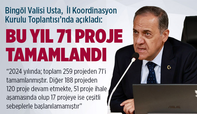2024 yılında; toplam 259 proje üzerinde çalışılmış ve bu projelerin 71'i tamamlanmıştır. Diğer 188 projeden 120 proje devam etmekte, 51 proje ihale aşamasında olup 17 projeye ise çeşitli sebeplerle başlanılamamıştır. İlimiz yatırım projelerine ilişkin çalışmalar 25 Genel ve Özel Bütçeli Kuruluş tarafından yürütülmektedir.