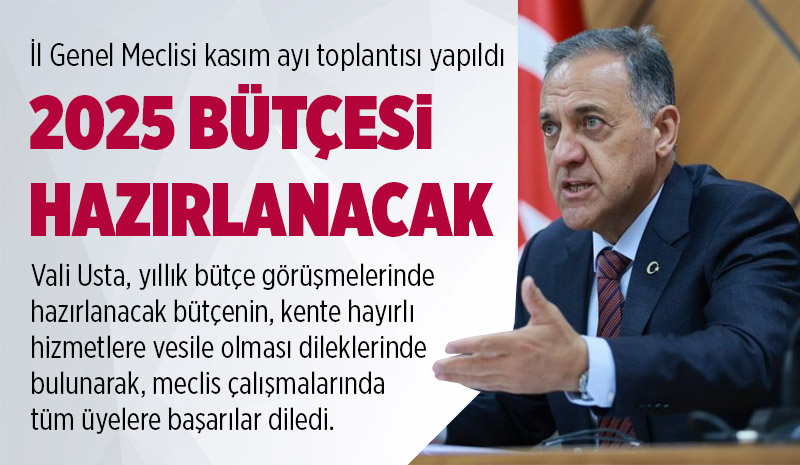 Bingöl Valisi Ahmet Hamdi Usta, 2025 yılı bütçesinin görüşüldüğü İl Genel Meclisi kasım ayı toplantısına katıldı.  İl Genel Meclis Toplantı Salonunda gerçekleşen toplantıya, Vali Ahmet Hamdi Usta'nın yanı sıra, İl Özel İdaresi Genel Sekreteri Enes Üçgül, İl Genel Meclis Başkanı Nihat Doğu ve Meclis Üyeleri katıldı. Burada konuşan Vali Usta, yıllık bütçe görüşmelerinde hazırlanacak bütçenin, kente hayırlı hizmetlere vesile olması dileklerinde bulunarak, meclis çalışmalarında tüm üyelere başarılar diledi.