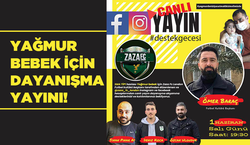 SMA hastalığına dikkat çekmek, farkındalık oluşturmak ve katkı sağlamak amacıyla sosyal medya hesapları üzerinden bir canlı yayın organize eden Zaza FC kulübü bu hareketiyle takdir topladı. Kulübün Başkanı olan Ömer Baraç, yaptığı açıklamada,” Bizler bu kulübü kurduğumuz zaman önceliğimiz asla sportif başarı olmadı. Burada yaşayan göçmen çocuklara bir hedef vermek istedik. Her zaman önceliğimiz insan oldu. Bugün de tüm sportif başarılardan daha önemli gördüğümüz, daha öncelik verdiğimiz bir konuda inisiyatif almaya karar verdik. Bir çocuğun sağlığı için elimizden geleni yapacağız. Geçen yıl da buna benzer yardımlarımız oldu ama bu kez daha iyi bir sonuç almak üzere bu canlı yayını yapacağız. Çocuklarımız her şeyden daha kıymetli. Sadece geleceğimiz değil bugünümüz de çocuklarımız olmalı. Şimdiden katılım gösteren destek veren herkese teşekkür ederim” ifadelerini kullandı.