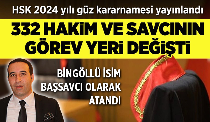BİNGÖLLÜ İSİM BAŞSAVCI OLARAK ATANDIBir süredir Çanakkale Başsavcı Vekili olarak görev yapan Bingöllü hemşehrimiz Behçet İşlek, Bodrum Cumhuriyet Başsavcısı olarak atandı. İşlek, daha önce Tunceli ve Karaman Cumhuriyet Başsavcılığı görevlerinde de bulunmuştu. Öte yandan Adli Yargı Kararname kapsamında Kiğı Hâkimi Furkan Tuğrul IŞIK Bingöl Cumhuriyet Savcılığı görevine, Çayıralan Cumhuriyet Savcısı Maide TURGUT IŞIK da Bingöl Hâkimliği görevine atandı. ADALET BAKANI TUNÇ: BAŞARILAR DİLİYORUMAdalet Bakanı Yılmaz Tunç, sosyal medya hesabı üzerinden yaptığı açıklamasında şu ifadeleri kullandı: Hâkimler ve Savcılar Kurulu 1. Dairesi tarafından 2024 Yılı Adli ve İdari Yargıda Mazerete Dayalı Güz Kararnamesi çalışmaları tamamlandı. Kararname, HSK internet sitemizde (http://hsk.gov.tr) birazdan yayımlanacak. Ülkemiz ve yargı camiamıza hayırlı olmasını temenni ediyor, hâkim ve Cumhuriyet savcılarımıza yeni görevlerinde başarılar diliyorum.