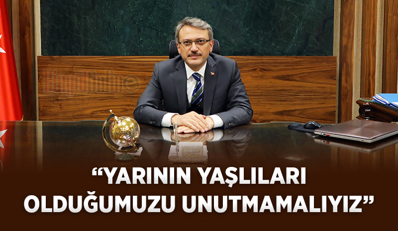 “1 Ekim tarihi, Birleşmiş Milletler tarafından dünyadaki yaşlı nüfusun giderek artması ve yaşlılara hak ettikleri değer ve saygının gösterilmesi maksadıyla, 1990 yılında ‘Dünya Yaşlılar Günü' olarak ilan edilmiştir. Her biri ulu birer çınar ve yolumuzu aydınlatan birer yıldız olan yaşlılarımız, geçmişte biriktirilen müktesebatı günümüze yansıtan ve kültürel zenginliğimizin gelecek kuşaklara ulaşmasına vesile olan değerlerimiz; aile ve toplumsal hayatımızın en kıymetli hazineleridir.