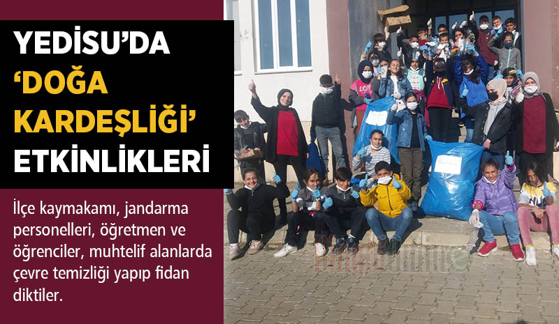 ‘2021 Bingöl Kardeşlik Yılı Projesi' etkinlikleri devam ediyor. Projede Kasım ayında ‘Doğa Kardeşliği' teması yer alıyor. Bu kapsamda Yedisu'da fidan dikimi ve çevre temizliği yapıldı. Yedisu İlçe Kaymakamı Mehmet Kaya ve ilçedeki görevli jandarma, öğretmen ve ilçede öğrenim gören öğrenciler muhtelif alanlarda çevre temizliği yaptı. Etkinlikler kapsamında yarıca ilçe sakinlerinin katılımıyla ilçede fidan dikimi gerçekleştirildi. Etkinliklerle ilgili yapılan açıklamada şu ifadelere yer verildi: