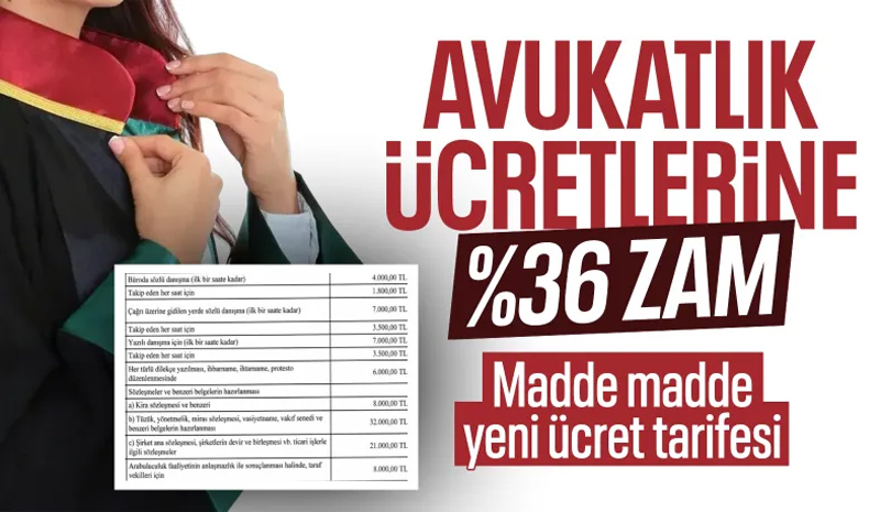 "2025-2026 yılı Avukatlık Asgari Ücret Tarifesi'nde, maktu ücretlere ilişkin ortalama yüzde 36,15 oranında artış sağlanmıştır. Ayrıca Nisbi Tarife ücretini belirleyen üçüncü kısma yüzde 13'lük yeni bir dilim eklenmiştir."