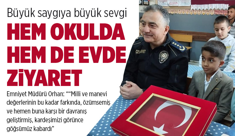 Yiğit Eymen'in İstiklal Marşı duyarlılığına Emniyet Müdürü Orhan duyarsız kalmadıBingöl'de 9 yaşındaki Yiğit Eymen, okula giderken okunan İstiklal Marşını duyunca hazır ola geçip beklemeye başladı. Bunu gören İl Emniyet Müdürü Şükrü Orhan, minik Yiğit Eymen'in bu duyarlılığına kayıtsız kalmayarak kendisini evi ve okulunda ziyaret etti. Yiğit Eymen'e Türk bayrağı hediye eden Orhan: 'Milli ve manevi değerlerinin bu kadar farkında, özümsemiş ve hemen buna karşı bir davranış geliştirmiş, kardeşimizi görünce göğsümüz kabardı' dedi.![]() Bingöl'de yolda yürürken İstiklal Marşının okunduğunu duyan 9 yaşındaki Yiğit Eymen Kera, hemen durarak hazır ola geçti. O anları gören ve kayıtsız kalmayan İl Emniyet Müdürü Şükrü Orhan, Yiğit Eymen'i evinde ve okulunda ziyaret ederek hediyeler verdi. Bingöl'de evinden yemeğini alarak okulun yolunu tutan 9 yaşındaki Yiğit Eymen Kera, bir okuldan yankılanan İstiklal Marşını duyunca hemen hazır ola geçerek bekledi. Çevredeki vatandaşların ilerlemesine rağmen Yiğit Eymen'in durarak İstiklal Marşını okuduğunu gören polis ekipleri, o anları cep telefonu kamerasıyla kaydetti. Görüntüleri izleyen İl Emniyet Müdürü Şükrü Orhan, görüntülere duyarsız kalmadı. İlk olarak Yiğit Eymen'i evinde ekipleriyle birlikte ziyaret eden Orhan, kendisi ve ailesini tebrik etti. Hediyeler veren Orhan, Eymen ve ailesi ile uzun süre sohbet etti. Aynı zamanda şehit torunu olan Yiğit Eymen, o anları anlatırken duygulandı ve gözyaşlarını tutamadı. Ardından Şehit Er Özkan Dumlu İlkokuluna giden İl Emniyet Müdürü Orhan, Yiğit Eymen Kera'ya Türk bayrağı hediye etti. Göz yaşları içerisinde o anları anlatan Yiğit Eymen Kera, “O gün yemeğimi almıştım, okula gidiyordum. İstiklal Marşı okunduğunda ben de hazır halde bekledim. İçimden İstiklal Marşını okuyarak bekledim” dedi. “Böyle bilinç ve terbiyeyle yetiştirilen evlatlarımız, geleceğimizi emanet ettiğimiz güzel gençlerimizdir”İl Emniyet Müdürü Orhan ise “Bizim de onun gibi gözlerimiz dolu dolu oldu. Onu görünce duygulanmamak elde değil. Yanından yöresinden geçen insanlar da vardı. Milli ve manevi değerlerinin bu kadar farkında, özümsemiş ve hemen buna karşı bir davranış geliştirmiş, kardeşimizi görünce göğsümüz kabardı. Hemen gelip ona sarılmak ve ailesini tebrik etmek istedik. Böyle bir bilinç ve terbiye ile yetiştirilen evladımız bizim geleceğimizi emanet edeceğimiz güzel gençlerdendir. Maşallah Allah nazarlardan saklasın. İnşallah karakteri bu şekilde devam etsin” diye konuştu. İl Emniyet Müdürü Şükrü Orhan'a teşekkür eden anne Hasret Kera ise “Çocuğumuzla gurur duyuyoruz. Bizim için bu tür şeyler önemlidir. Kendisi şehit torunu. Benim babam sivil şehit. Öğretmen zannedilerek yolda şehit düşmüş” şeklinde konuştu.