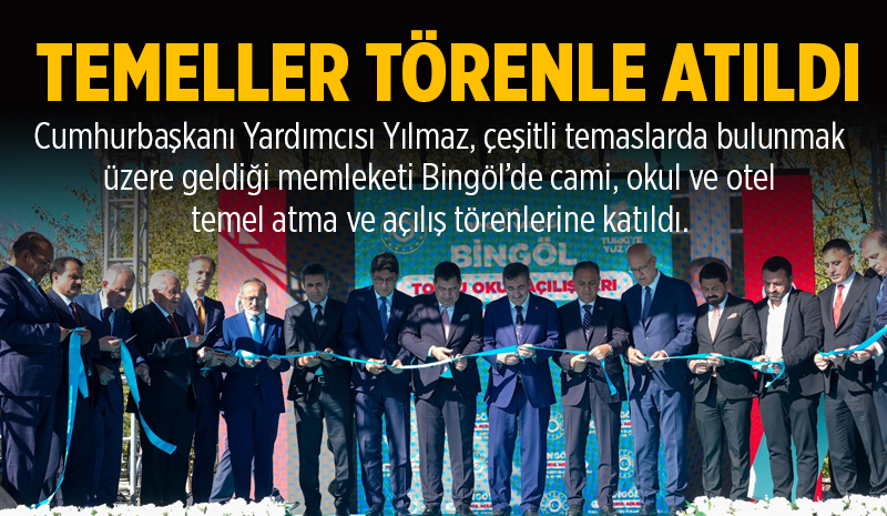 | Yılmaz, temel atma ve açılış törenlerinde….Cumhurbaşkanı Yardımcısı Yılmaz, çeşitli temaslarda bulunmak üzere geldiği memleketi Bingöl'de cami, okul ve otel temel atma ve açılış törenlerine katıldı. Bingöl'e gelen Cumhurbaşkanı Yardımcısı Cevdet Yılmaz, açılış ve temel atma törenlerine katıldı. Yılmaz, Bingöl programı kapsamında ilk olarak Genç ilçesinde yapımı tamamlanan Abdurrahim Özge Camii'nin açılışını gerçekleştirdi. Daha sonra kent merkezine geçen Yılmaz, hayırseverlerin katkılarıyla yapımı üstlenilen okullar için düzenlenen toplu temel atma ve açılış törenine katıldı. OKULLARIN TEMELLERİ TÖRENLE ATILDI Cumhurbaşkanı Yardımcısı Cevdet Yılmaz, Kazakistan Fahri Konsolosu Ahmet Budan tarafından yapımı üstlenilen 12 derslikli Hacı Selim & Azize Budan İlkokulu ve 5 hayırsever tarafından yapımı devam eden; Firince-İskender Demircioğlu Ticaret Meslek Lisesi, Yaşar Turhan Anadolu Lisesi, Yusuf Korkmaz Özel Eğitim Meslek Lisesi, Hacı İbrahim Burakgazi Anaokulu, Ziver İlkokulu (Güveçli Köyü), Şükriye Turhan Anadolu İmam Hatip Lisesi'nin toplu temel atma törenine katıldı. HASTANE İNŞAATINDA İNCELEME VE OTEL AÇILIŞI Cumhurbaşkanı Yardımcısı Cevdet Yılmaz, toplamda 102 bin M² alan üzerinde inşa edilen, 1280 fore kazık, 269 sismik izolatör ve 60 damper ile Türkiye'nin depreme dayanıklı en sağlam binalarından biri olan 500 yataklı Yeni Bingöl Devlet Hastanesi inşaatını ziyaret ederek inşaat süreci ve son durum hakkında İl Sağlık Müdürü Dr. Samet Tatlı ve Müteahhit firma yetkililerinden bilgi aldı. Kabası önemli oranda tamamlanana ve iç ince işçiliği yapılmaya başlanan hastanenin 2026'da açılması için çalışmaların hızla devam ettiği belirtildi. Cumhurbaşkanı Yardımcımız Dr. Cevdet Yılmaz, beraberindeki heyetle TKDK destekleriyle yatırımcı Başak Feyza Koç tarafından Bingöl'e kazandırılan Lina Garden Otel'in açılışını gerçekleştirdi. Yılmaz, daha sonra Bingöl Valiliği'ne geçti. Burada Valilik Şeref Defterini imzalayan Yılmaz, kentteki çalışmalar hakkında Vali Ahmet Hamdi Usta'dan genel bilgiler aldı. Buradan AK Parti İl Başkanlığı'na geçeceği belirtilen Yılmaz'ın son durağının ise Bingöl Belediyesi olacağı öğrenildi.