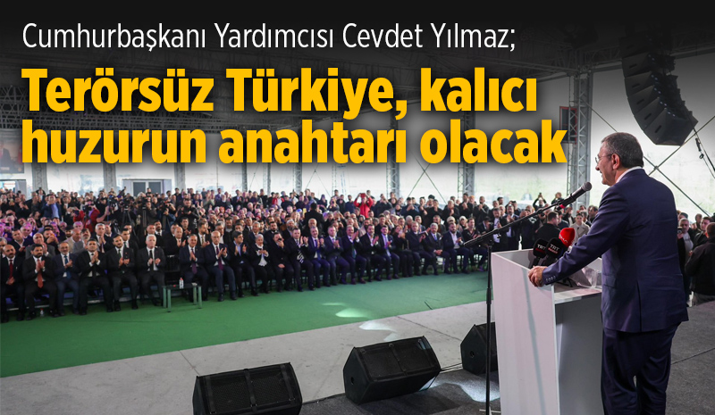 Cumhurbaşkanı Yardımcısı Cevdet Yılmaz, Terörsüz Türkiye hedefinin başarıya ulaşmasıyla birlikte ülkede kalıcı huzur ve güven ortamının tesis edileceğini belirterek, bunun artık süreklilik kazanmış bir devlet politikası olduğunu ifade etti.