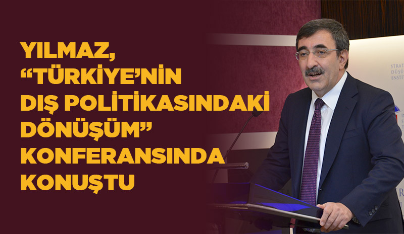 TBMM Plan ve Bütçe Komisyonu Başkanı Cevdet Yılmaz, Stratejik Düşünce Enstitüsünde düzenlenen “Türkiye'nin Dış Politikasındaki Dönüşüm” başlıklı konferansta kapsamlı değerlendirmelerde bulundu. SDE ve YTB tarafından düzenlenen Uluslararası Diplomasi Okulunun 40 farklı ülkeden katılım sağlayan 62 uluslararası öğrencisine hitaben konuşan Yılmaz, Türkiye'nin dış politikasına dair değerlendirmelerde bulundu.