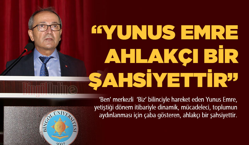 Prof. Dr. Çetin, “Önder ve karizmatik şahsiyetlerden biri olarak Yunus Emre; toplumsal tecrübeler, dönemin bilgileriyle donatılmış, toplumun zihniyet dünyasının yarattığı dinî-mitik anlatılarla zenginleştirilmiş, her an mücadele eden ve mücadele etmeye hazır bir karakter yaratmıştır. “Ben” merkezli “Biz” bilinciyle hareket eden Yunus Emre, yetiştiği dönem itibariyle dinamik, mücadeleci, toplumun aydınlanması için çaba gösteren, ahlakçı bir şahsiyettir” şeklinde açıklamalarda bulundu.