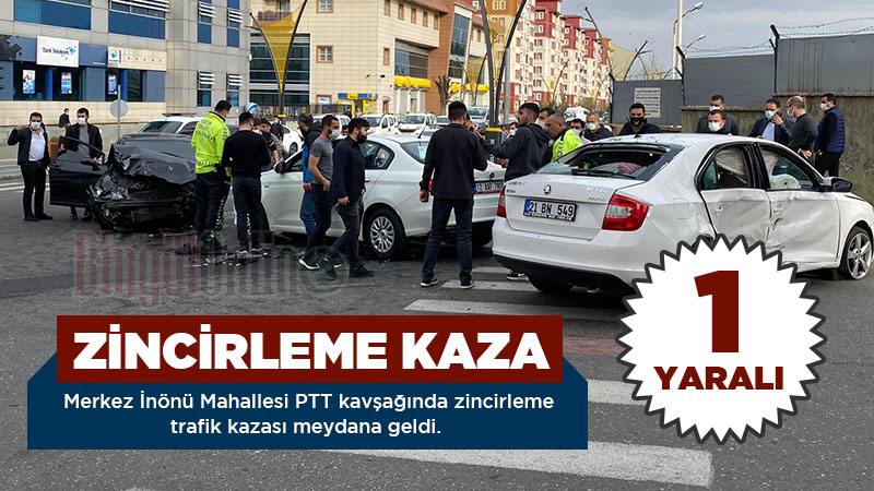 Kaza, PTT kavşağında saat 17.00 sıralarında meydana geldi. Alınan bilgilere göre, sürücüleri öğrenilemeyen 21 BN 549, 12 AFF 780 ve 34 DY 3650 plakalı araçlar kavşakta çarpıştı.